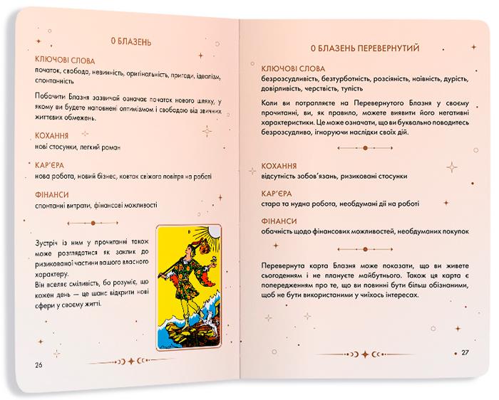 Посібник «Таро Райдера — Вейта» — ідеальний супутник у ворожінні для всіх, хто бажає не просто поринути в магічний світ Таро, а й зрозуміти його.